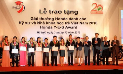 Các sinh viên xuất sắc nhất nhận giải thưởng Honda Y-E-S năm 2016.(Ảnh: Văn Xuyên/Vietnam+)
