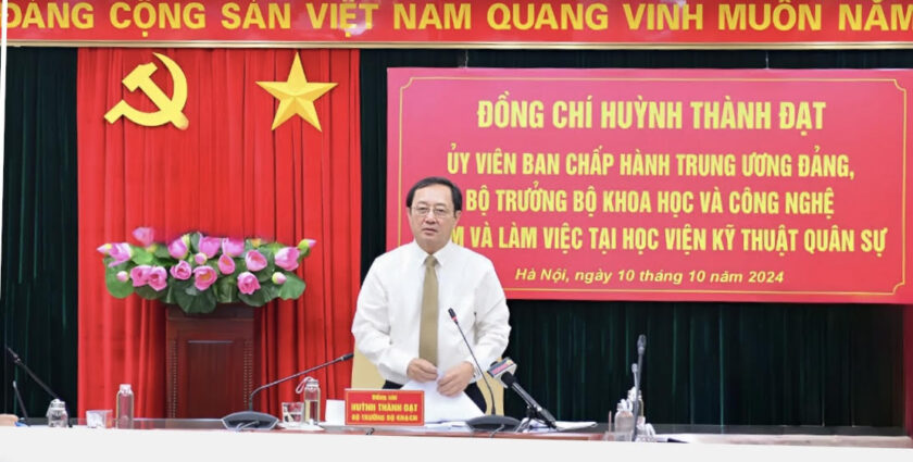 Phát biểu tại buổi làm việc, Bộ trưởng Huỳnh Thành Đạt chúc mừng Học viện trong giai đoạn 5 năm vừa qua luôn là đơn vị hàng đầu trong hoạt động giáo dục đại học, sau đại học và nghiên cứu khoa cơ bản và nghiên cứu ứng dụng. Với các con số gần 6000 bài báo được công bố; 18 nhóm nghiên cứu mạnh; 52 nhiệm vụ nghiên cứu cơ bản; 55 nhiệm vụ nghiên cứu ứng dụng các cấp thực sự là những con số rất ấn tượng, phản ánh rõ nét nhất năng lực của Học viện.