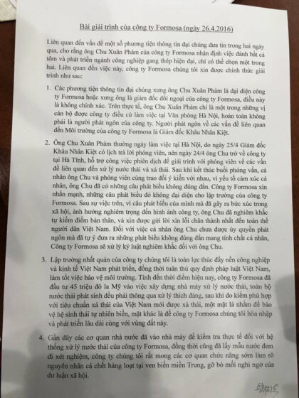Formosa xin lỗi về phát ngôn gây sốc của ông Chu Xuân Phàm