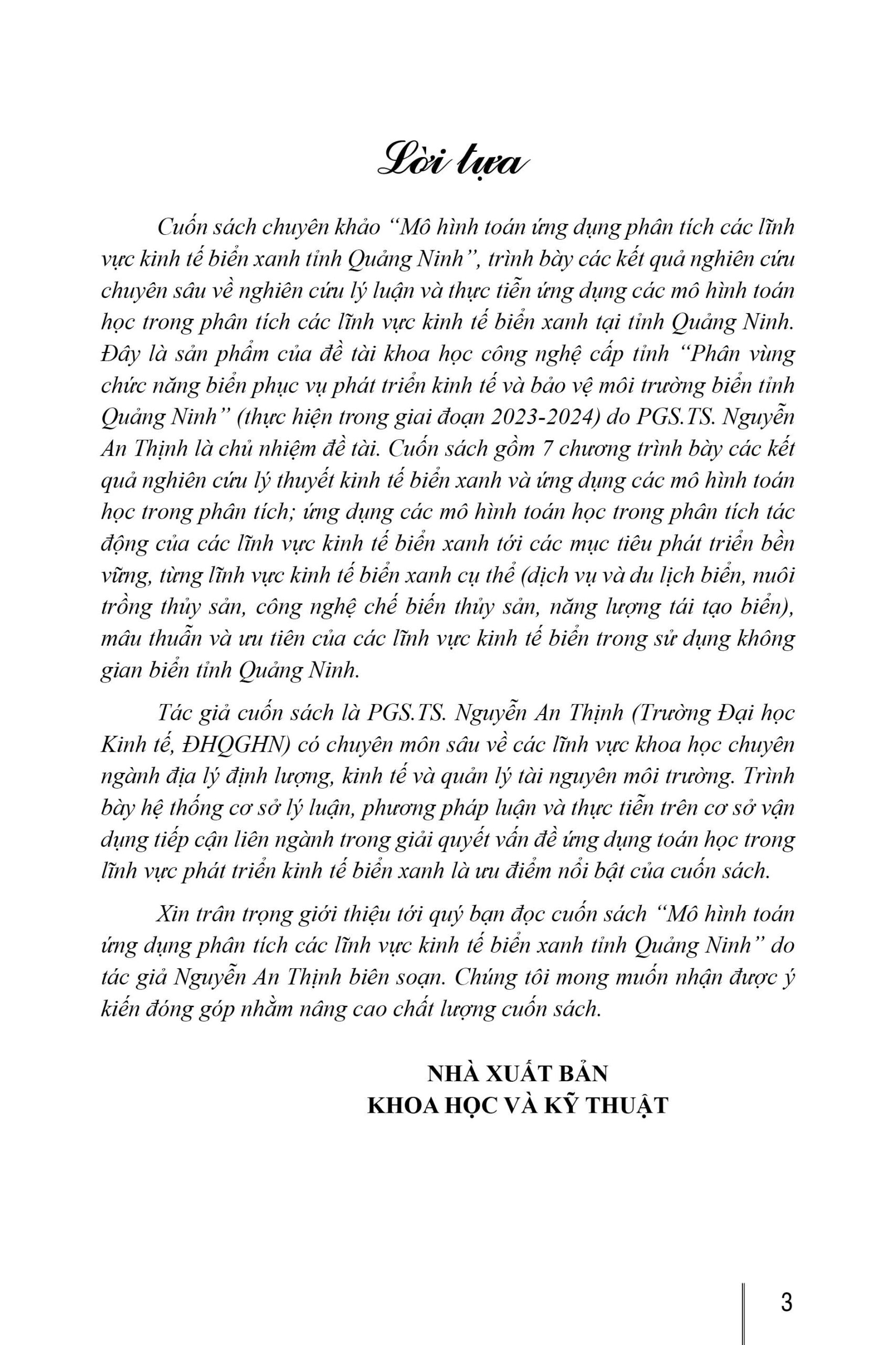 Mô hình toán ứng dụng phân tích các lĩnh vực kinh tế biển xanh tỉnh Quảng Ninh