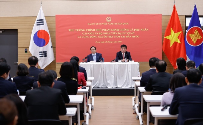 Thủ tướng Phạm Minh Chính gặp cộng đồng người Việt tại Hàn Quốc, bày tỏ mong muốn các nhà khoa học Việt ở nước ngoài góp sức phát triển đất nước.