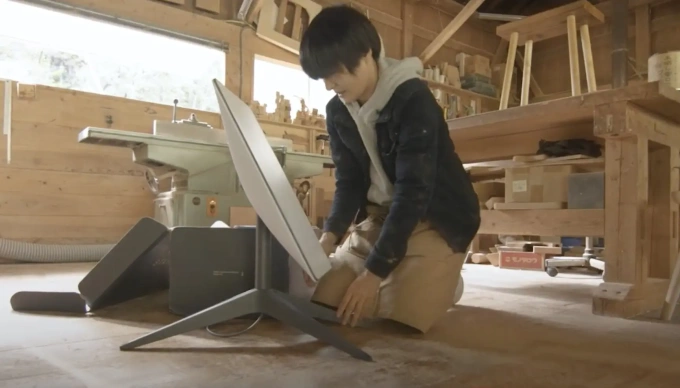 Kozue Tobo, nghệ nhân đồ nội thất Nhật Bản, sử dụng Starlink kết nối với bên ngoài khi sống trong rừng sâu để lấy cảm hứng thiết kế. Ảnh: Starlink