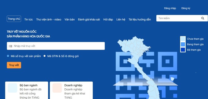Giao diện Cổng thông tin truy xuất nguồn gốc sản phẩm, hàng hóa quốc gia.
