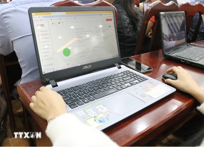 Giáo viên tại Ninh Thuận sử dụng phần mềm ứng dụng trí tuệ nhân tạo (AI). (Ảnh: Nguyễn Thành/TTXVN)
