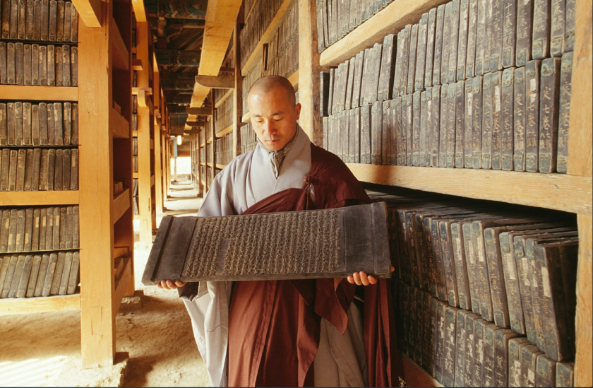 Tiếp đến, Lịch sử sách đưa chúng ta đến “Đông Á thời Trung cổ và thời kỳ cận đại”. Giống như phần còn lại của thế giới, ở khu vực này phương thức xuất bản sớm nhất là chép tay. Tuy nhiên, từ thế kỷ 7 đến 13, khu vực này đã phát minh ra một số công nghệ in: in khắc gỗ hay còn gọi là in mộc bản, và các loại chữ in rời bằng đất nung. In mộc bản là hình thức sản xuất sách chính và là công nghệ in thống trị ở khu vực này cho đến thời hiện đại.